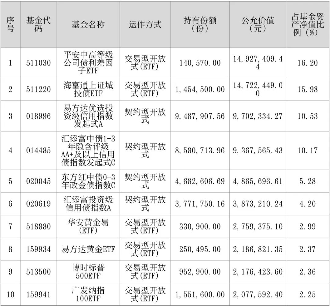 图2:东方红颐和稳健养老两年持有FOF前十名基金投资明细(2025年三季报)