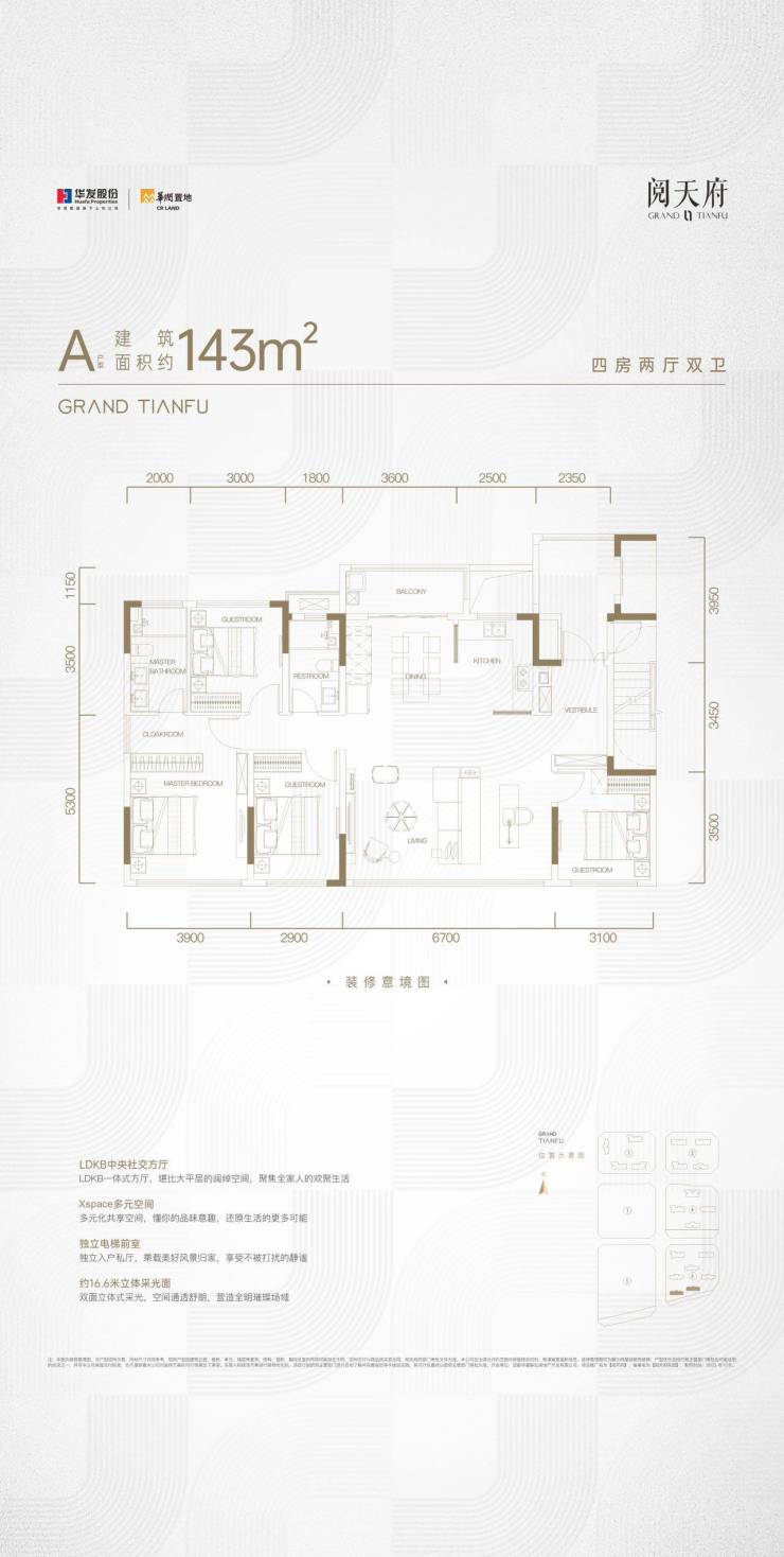 202㎡(四室两厅三卫);均价3.3-3.7万/㎡;总价660-760万