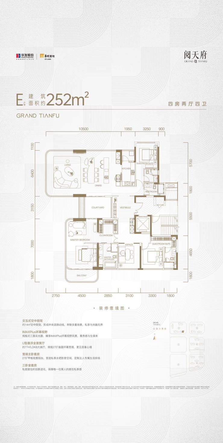 252㎡(四室两厅四卫);均价3.5-4万/㎡;总价890-1020万