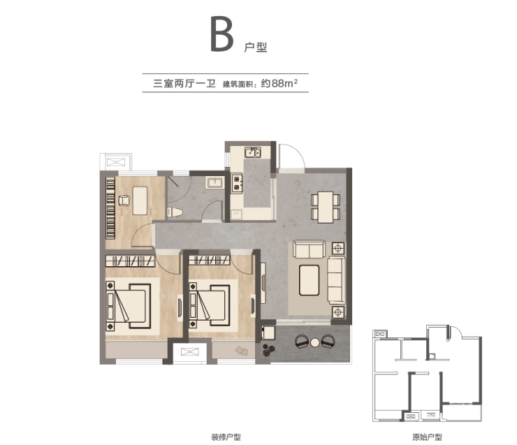 户型方正/三卧室朝南/套房式主卧/南向宽境阳台