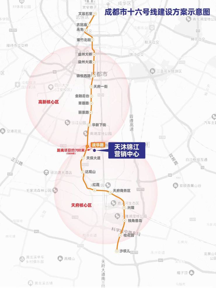 地铁16号线站点距项目约700米,串联武侯区、高新区及天府新区。现有1号线广福站距离1公里,5号线设站两个,远期还规划有19、26号线,轨道交通优势显著。