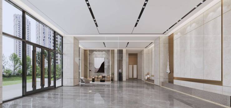 项目采用地上地下双大堂设计,以深色为主基调,融合金属、石材、镜面玻璃等材质,打造星级酒店式入户体验。地下两层停车场配备986个机动车位和1231个非机动车位,其中20%配备充电设施。无障碍设计贯穿整个项目,包括专用停车位、人行通道及电梯,体现人性化关怀。