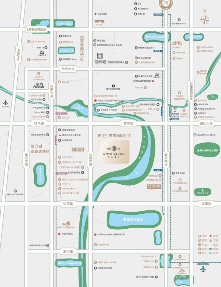 纵向天府大道、益州大道、梓州大道、剑南大道贯通南北,横向牧华路、沈阳路连接东西,30分钟生活圈覆盖城市核心区域。