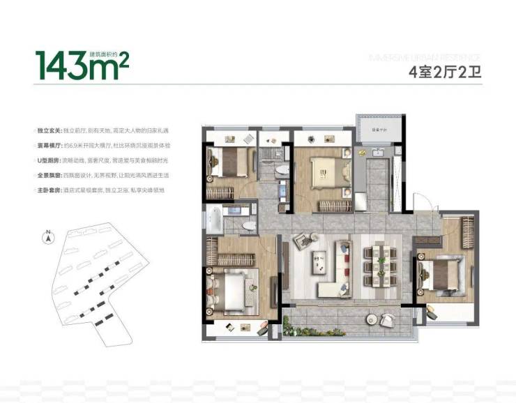 终极改善来了!约6.9米的寰幕横厅,往那一站,整个小区的风景都是你的。U型厨房宽敞明亮,做饭都成了一种享受。四个卧室都带飘窗,主卧套房的配置直接拉满,这就是品质生活的样子。