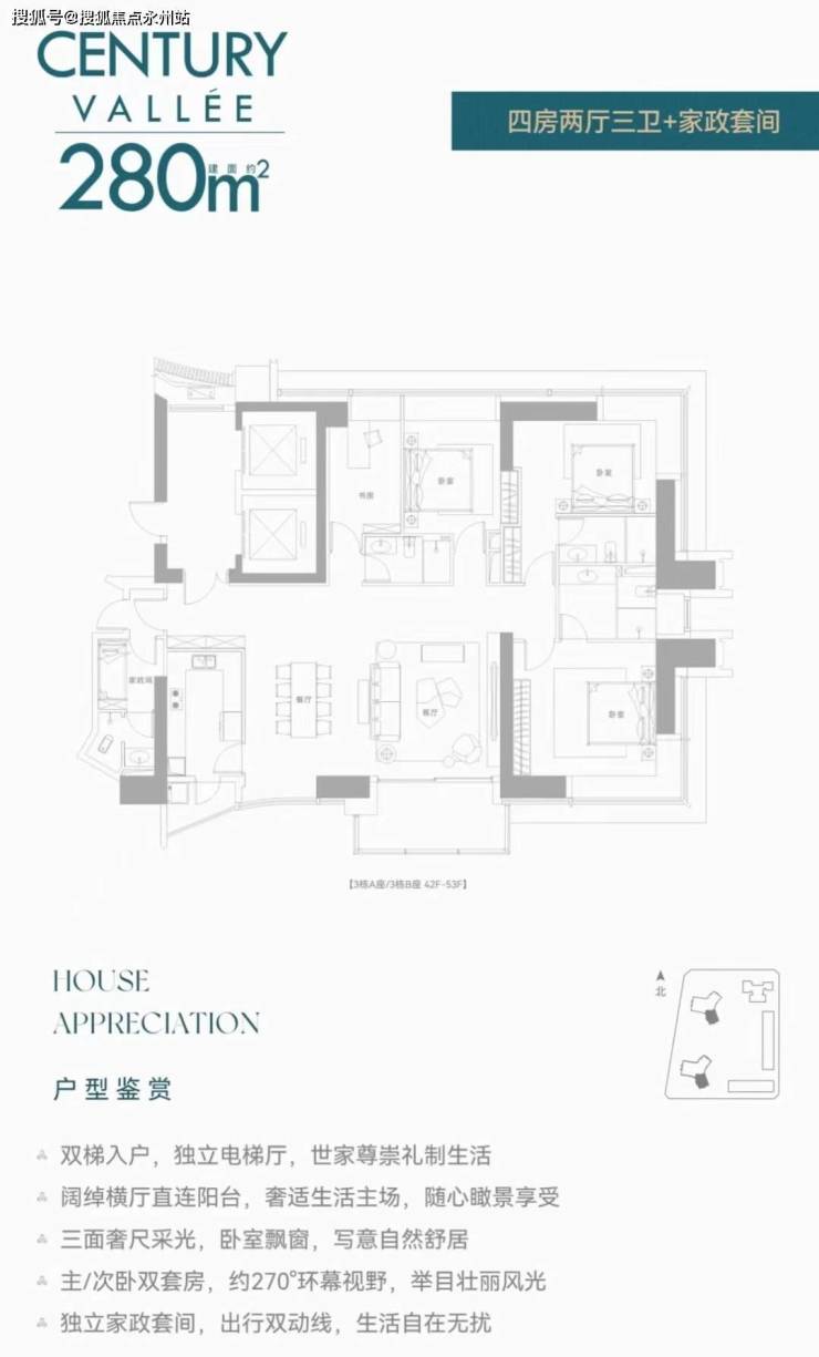 户型面积:233/280/386平三至四房,420–1080平云端复式