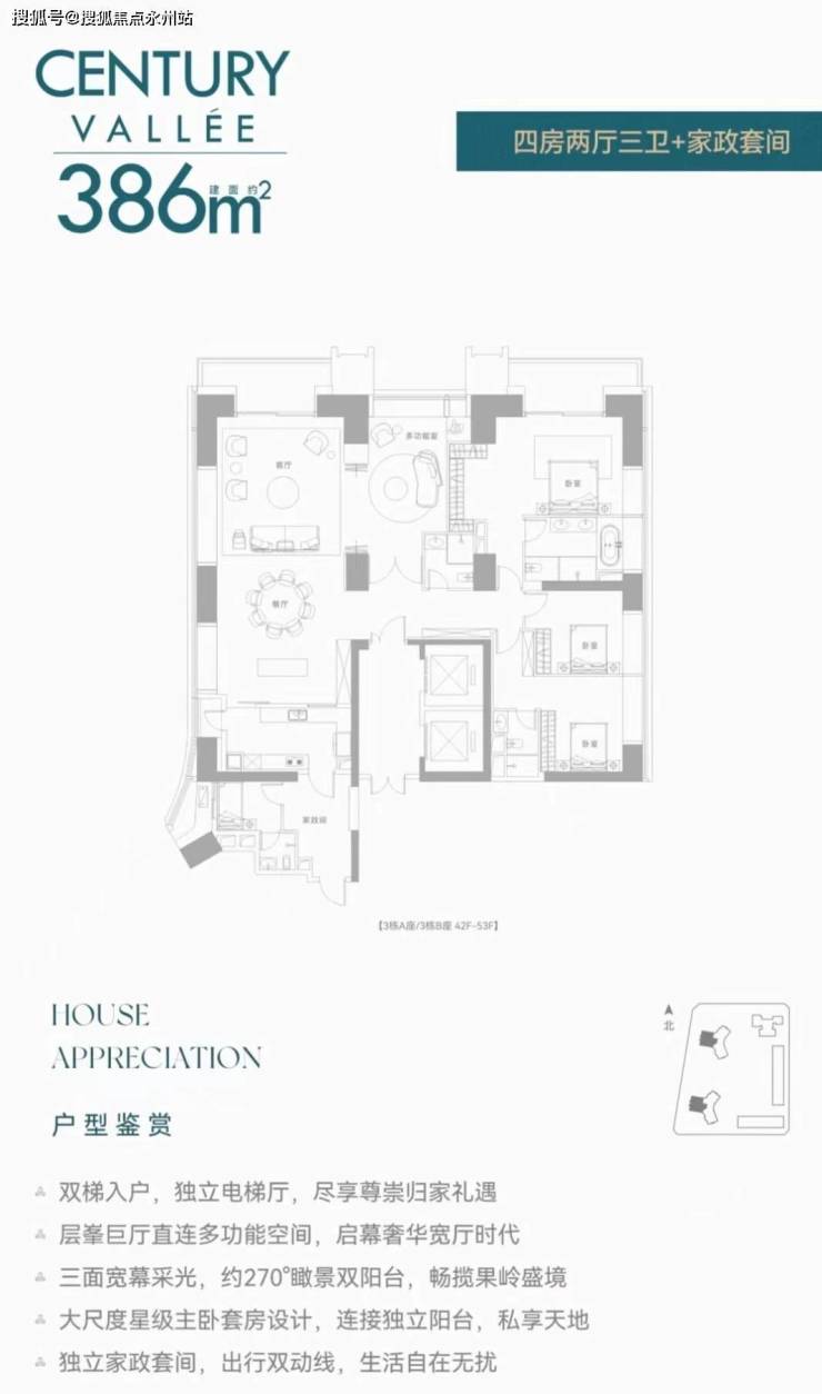 385-391㎡的4+1房2厅3卫,折后总价2959-4781万/套,单价7.68-12.24万/㎡。