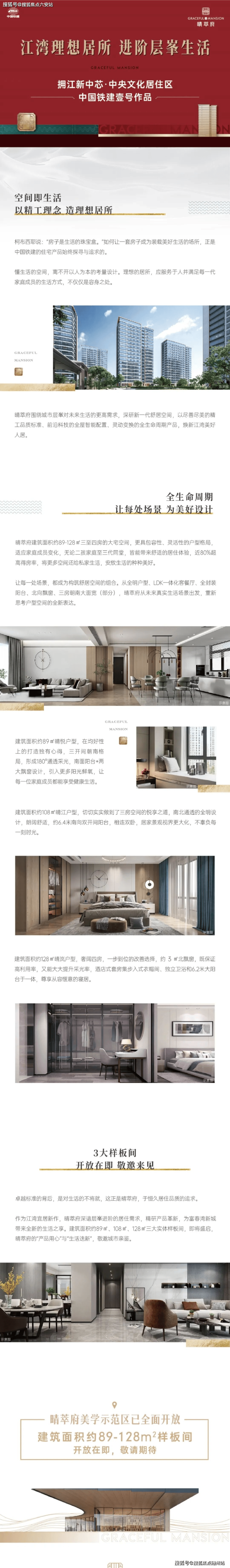 目前,中国铁建·晴萃府推出的建面约89㎡三房两厅两卫和128㎡四房两厅两卫户型,以成长型设计理念满足不同家庭阶段需求。89㎡精致三房实现空间零浪费,明厨明卫设计提升舒适感;128㎡豪华四房配备双开间阳台,视野开阔且功能分区灵活。