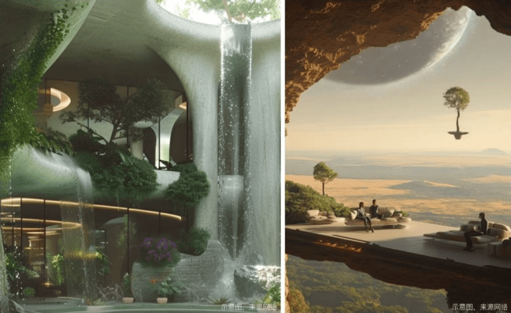 【生态景观体系】创新打造垂直瀑布、风雨连廊等立体景观,形成地面至空中的多维生态系统。沙河景观带与项目四维花园相映成趣,实现自然与建筑的有机融合。