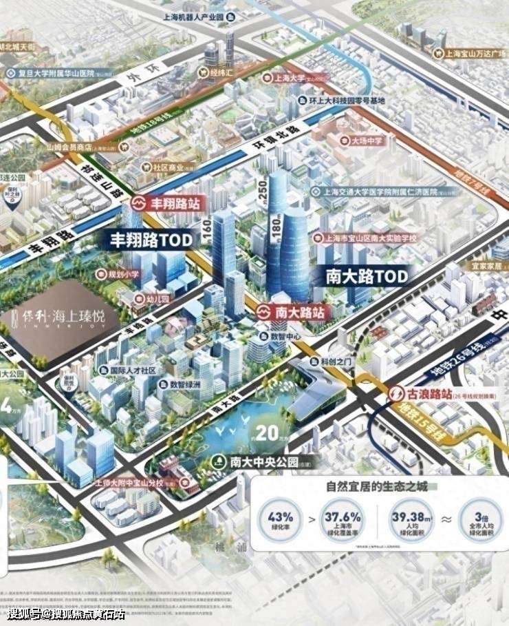 南大智慧城核心区已落地上师大附中宝山分校(市级实验性示范性高中)已开始招生。