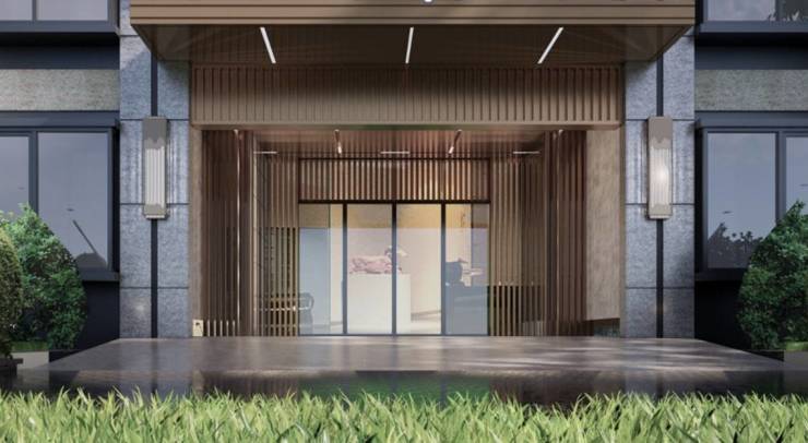 入户尊崇:云朵拉灰石材立面、岩板山水照壁,增加归家仪式感