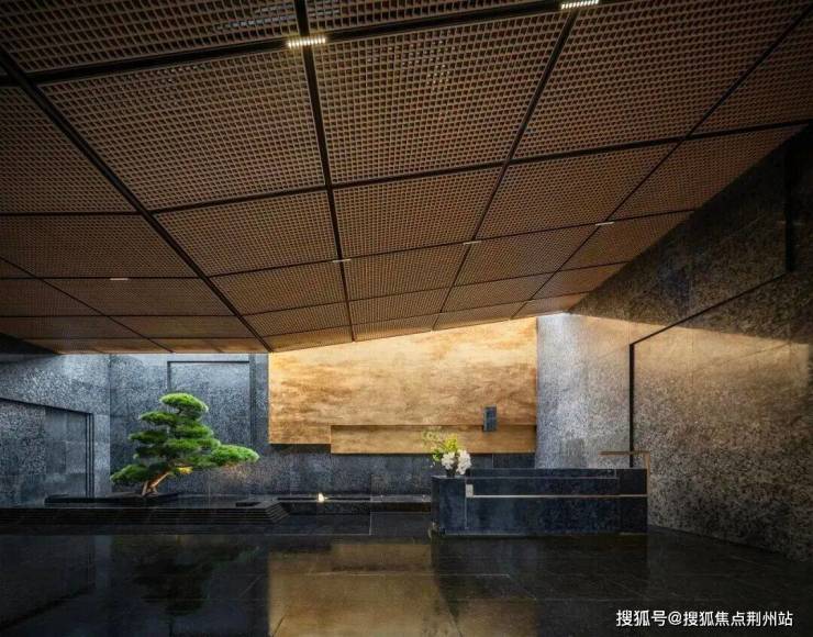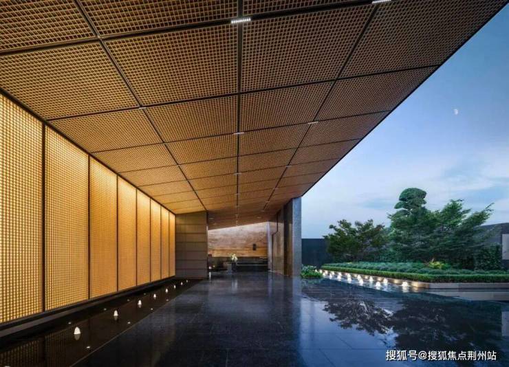 四时造景,曲水流觞。镜面水景,采用黑色奢石进行铺贴。远处的亭榭,转译着归家的温度与适从,借树梢上的一缕清风,浸润内心的疲乏。将空间留给自然,予居者以自在,予心灵以宁静。