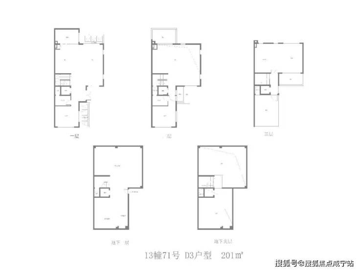 建面约157-176㎡3房,约202-205㎡4房的联排