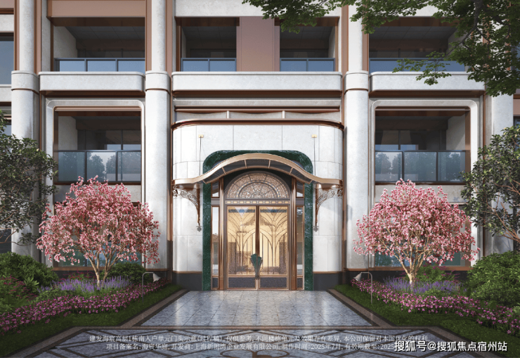 项目大门口标配的铜狮庄严中透出几分摩登腔调。主入口的铜艺精雕大门上,建发特别邀请了百年品牌“老凤祥”掐丝珐琅非遗大师陈徐奇,以掐丝珐琅工艺打造门钹,精致典雅。门厅以上海的标志白玉兰为造型,勾勒出摩登与飘逸并存的气质。