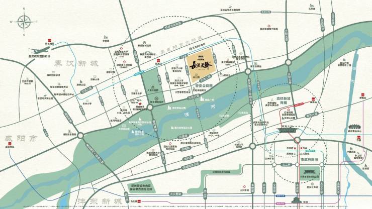 三条主干道:兰池大道、正阳大道、泾渭大道,可快速抵达西安主城区