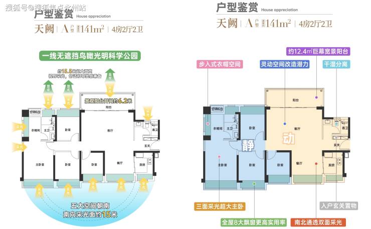 141㎡顶豪专享15.6 米超长面宽:主卧套房 + 独立家政间,私享科学公园全景视野。