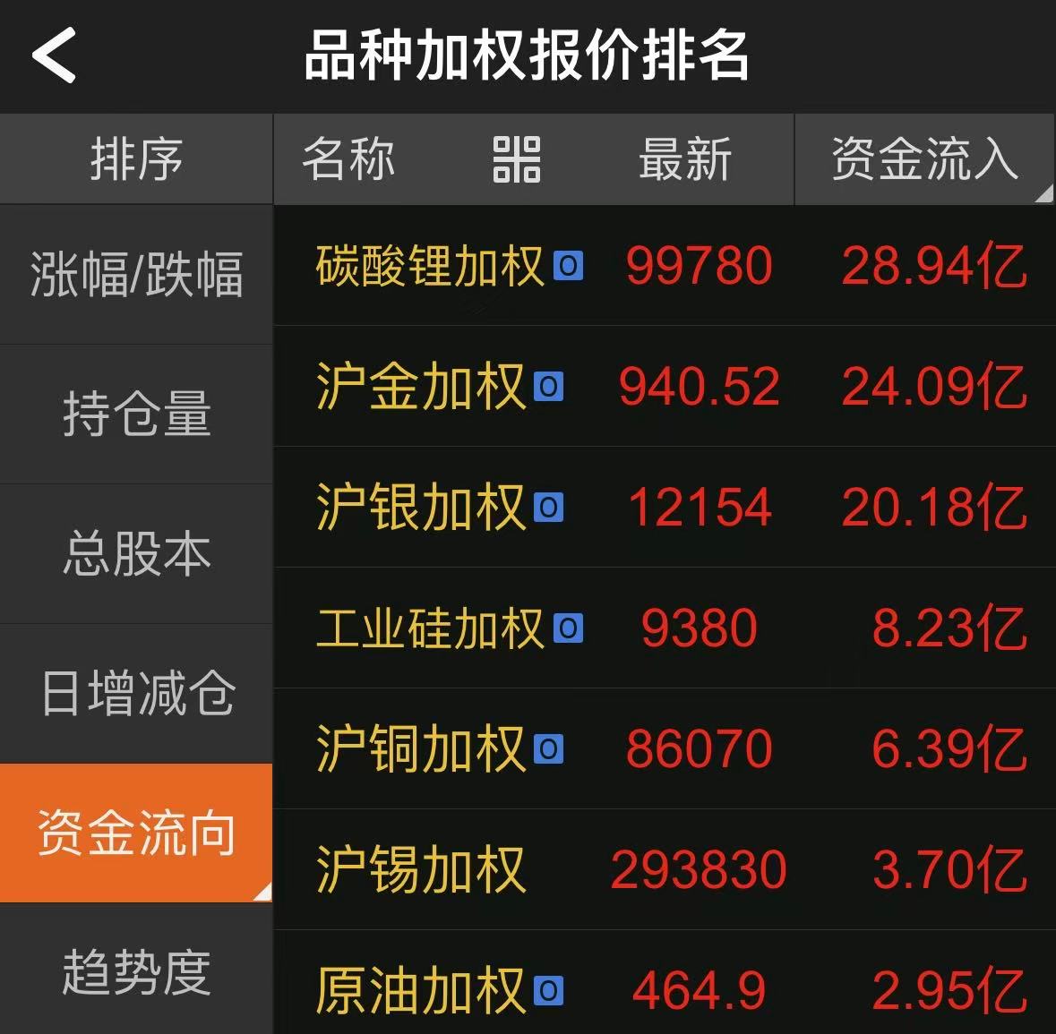 文华财经数据显示,截至19日收盘,碳酸锂期货整体增仓7.75万手,对应流入资金28.94亿元,位居国内所有期货品种的首位。