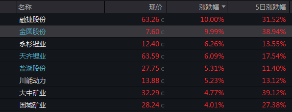 股、期联动之下,锂矿股当日涨幅A股居前,个别公司如金圆股份,本周更是连续三天涨停,该板块也成为了本周股票市场最大的热点。