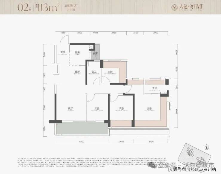 建面约114㎡四房户型是113㎡户型的镜像版,格局一模一样。