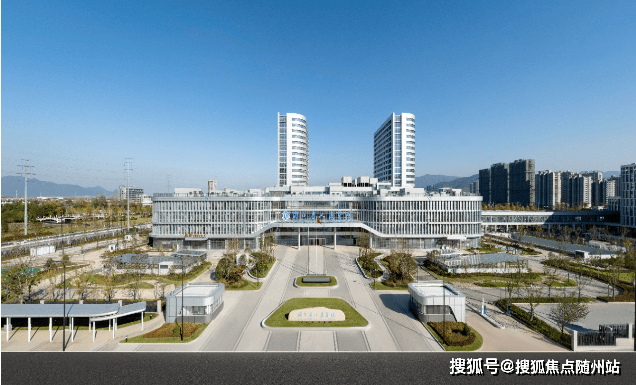 [医疗]:浙江省人民医院富阳院区(约0.8km距离,主体完工)——朝晖本部外第一个高等级综合性院区,前沿医疗资源守护家人健康。