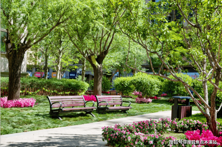 – **四时花境**:春樱、夏荷、秋桂、冬梅,40%高绿化率让这里绿树成荫,推窗见景,开门游园