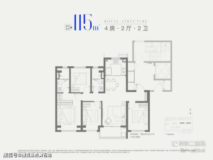 ● 115㎡四房两卫(四期):总价500万起,一梯两户,四开间朝南(三房+客厅朝南),南北通透,奢阔空间尺度,适配多子女家庭或三代同堂。