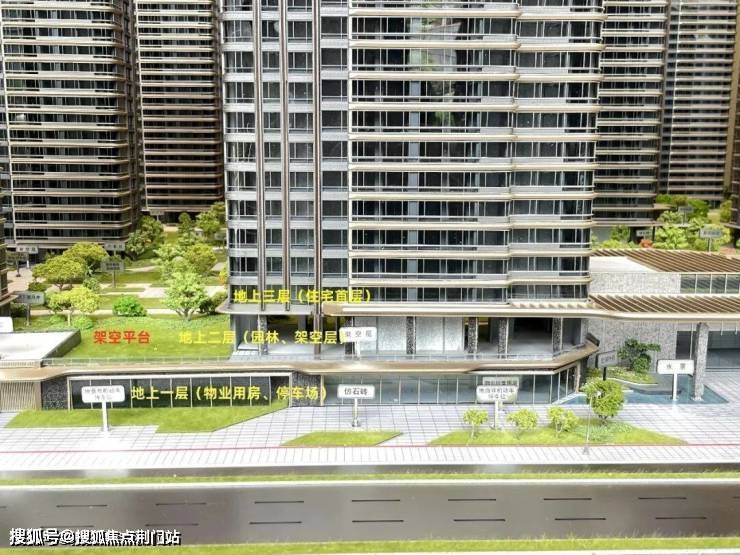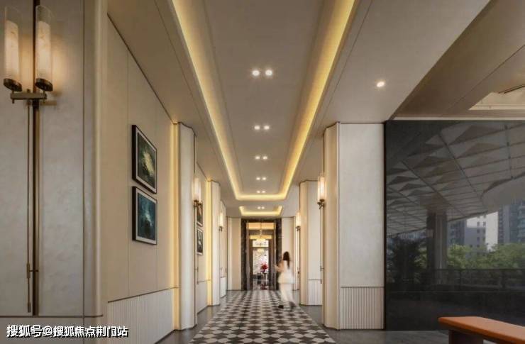 其创新性在入口处展现得淋漓尽致:常规沿街楼栋通常直接由物业用房过渡至住宅二层,但该项目在物业用房上方特别增设了架空层,形成”物业用房-架空层-住宅二层”的独特空间序列。这一设计突破性地通过地面整体抬升,不仅解放了沿街楼栋原本受限的架空层空间,更创造出尺度恢弘的入户大堂,使归家动线在垂直维度上获得仪式感的升华。