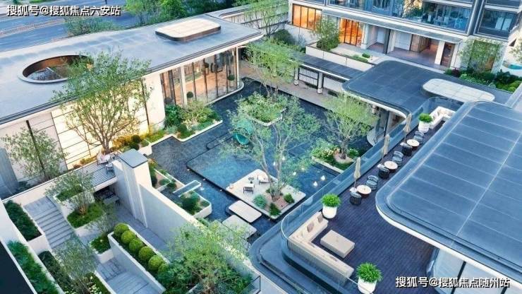 社区西边直线距离钱塘江约800米,设计上巧妙将水景元素融入园区,搭配立体绿化、小瀑布和休憩平台,整体呈现出现代自然的风格。
