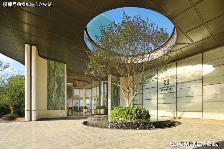 社区主入口是宽约80米、高约7.1米的超宽幅门头,两侧的维多利亚绿奢石以及中央的白雪公主透光石营造出归家仪式感,中央栽植的约60年树龄紫薇树更添艺术氛围。