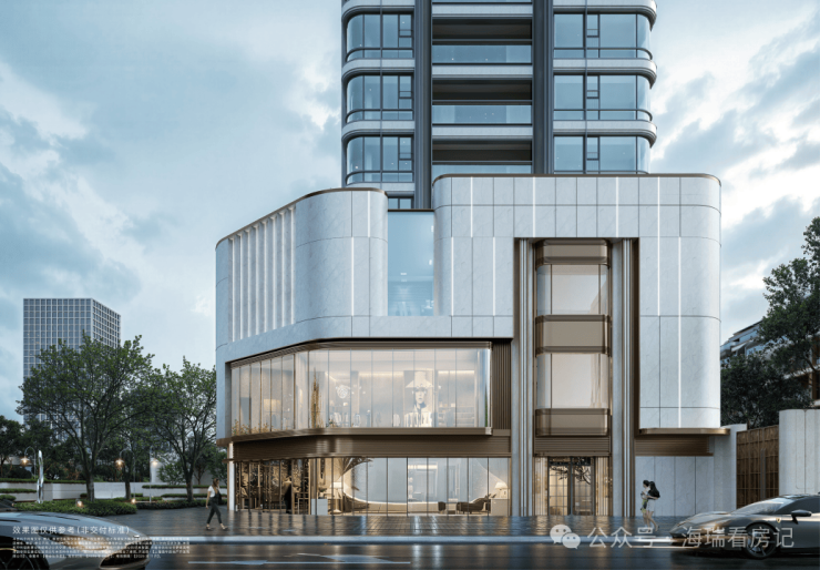 其一,270°转角弧形飘窗的创新,超绝的窗墙比造就空中全景舱。弧面玻璃都是三玻两腔,造价高昂。其二,在建筑层间用弯弧铝板来勾勒线条,工艺复杂、成本昂贵,楼体铝板也是弧面设计,并且整体大面运用滚涂工艺,色彩鲜艳、防腐性能好、耐气候性也更好,豪宅气质更加历久弥新!