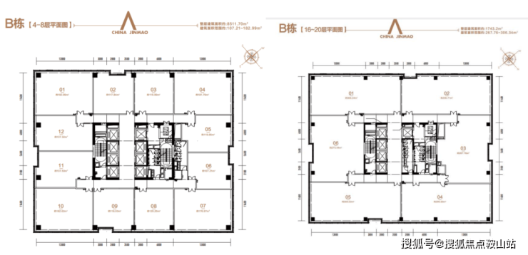 层高设计:9.8米挑高大堂,首层层高5.6m,标准层高4.2m,最高层高5.1m,楼栋总高度108.65米