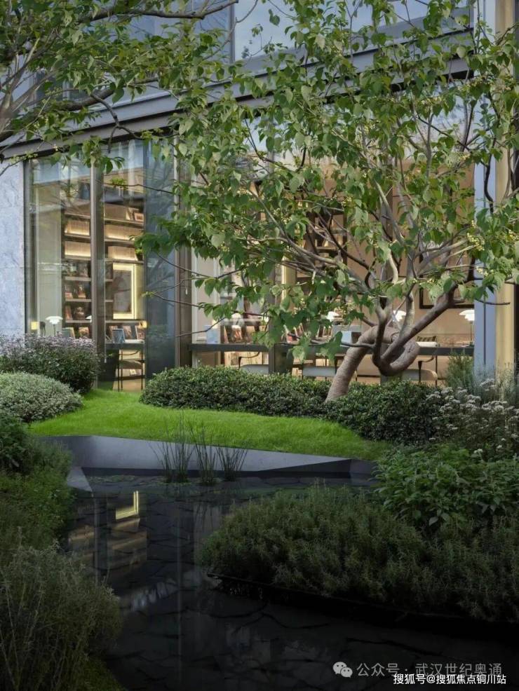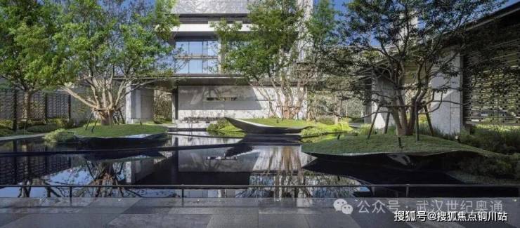 作为归家第一站,主入口大堂三层叠水,拾阶而上,穿过社区大堂,三座漂浮岛屿对应中国传统园林“一池三山”,归家的轨迹,遍布长江的丰美气韵。