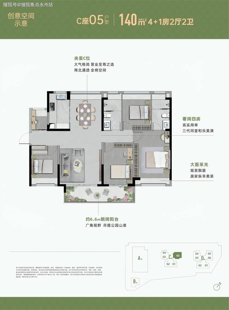改善家庭:140㎡四房(南北通透)景观和空间优势明显,适合长期居住。