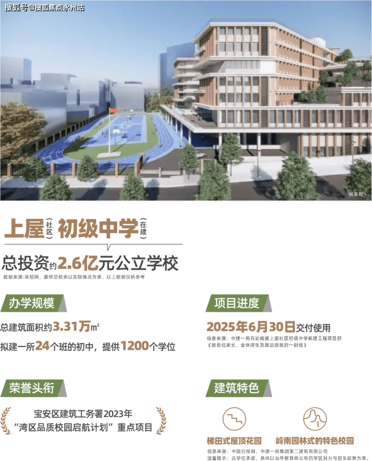 在建学校:上屋初级中学(一路之隔,2026年竣工),规划36班,将新增1800个学位。