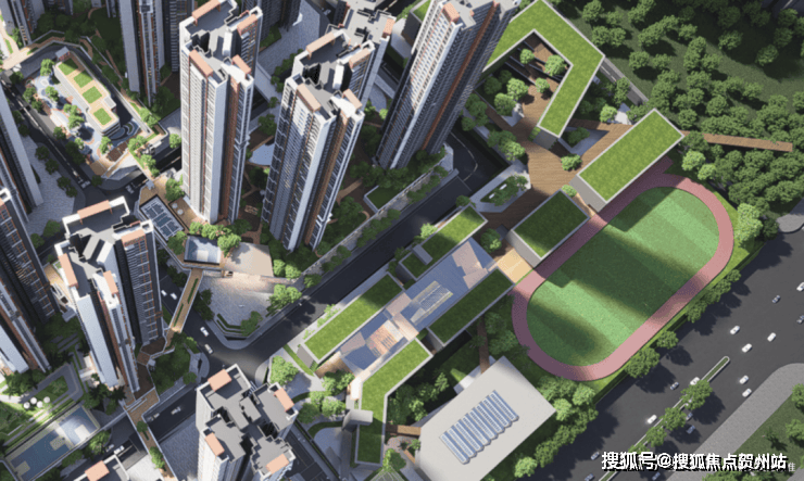 项目重点规划约6000㎡有氧体育活动场地,通过双层立体化集中布置,以天桥串联起运动社区的各个场地与专属社区,给予更多大城美好体验。