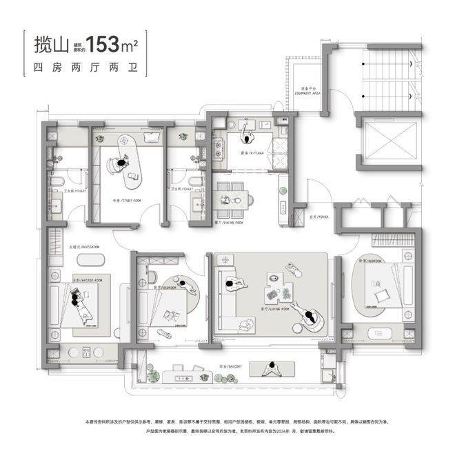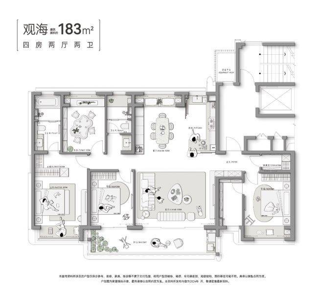 建面约153、183㎡户型均为4房2厅2卫设计,全卧室朝南、大横厅,宽景双联阳台,全屋带飘窗,采光通风效果卓越。