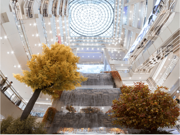 · 全球最大室内景观瀑布,总面积400平米,水流长度108米