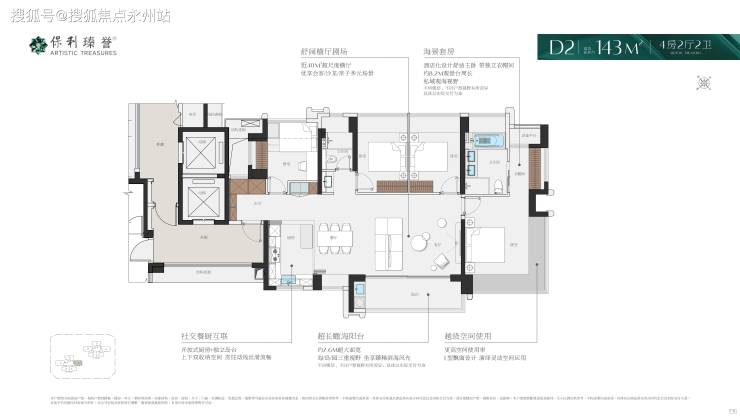 本次加推新增的“全能选手”,LDKB大方厅布局可规划“X空间”(开放式书房、茶室),比143㎡少5㎡却实现同等功能,西南向享海景,东北向卧室看城市景观,真正做到南北通透。