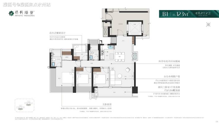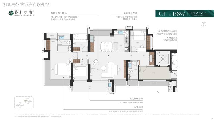 户型面积:涵盖114-123㎡四房二卫、138-143㎡4+1房二卫,均为新规设计,得房率超100%,最大赠送面积近44㎡。