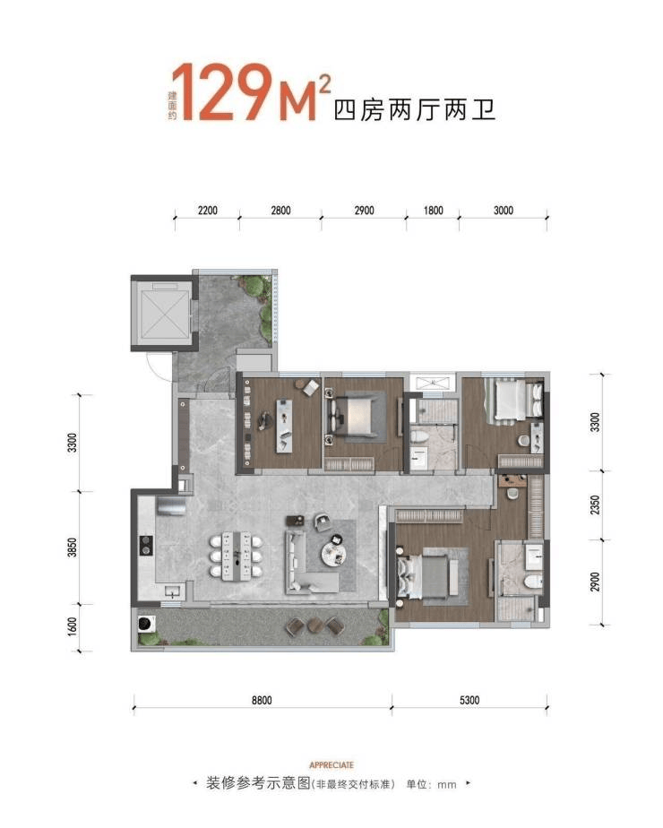 129㎡四室两厅双卫