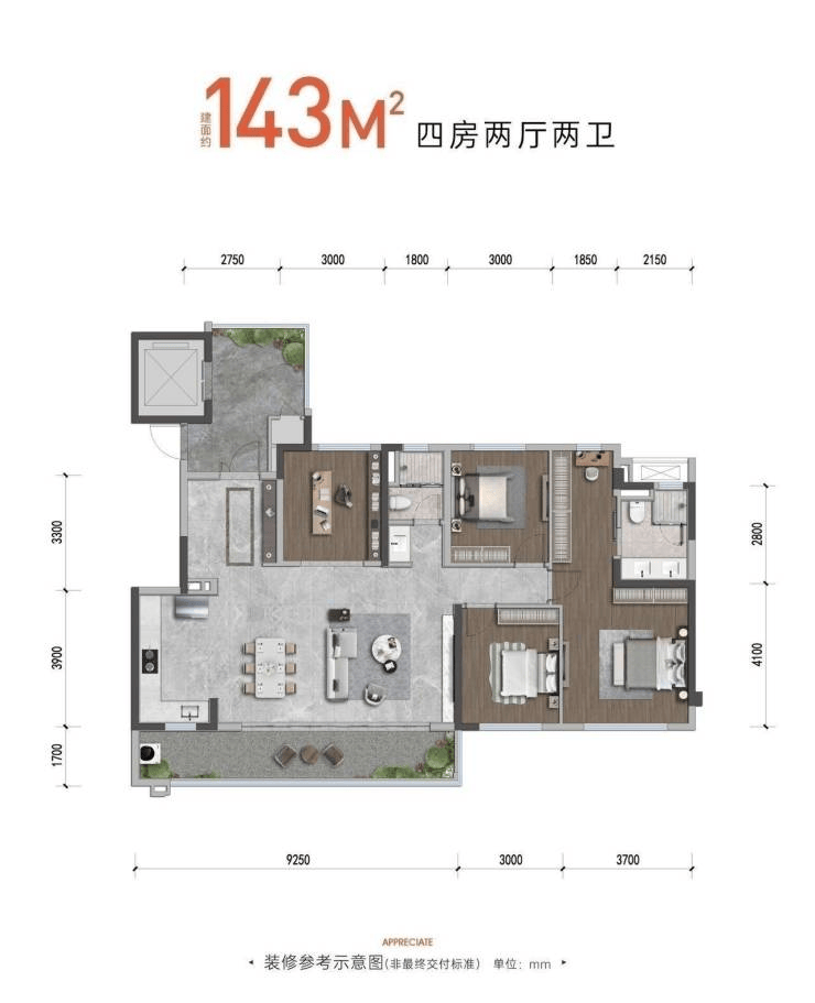 面积:108/128/143㎡