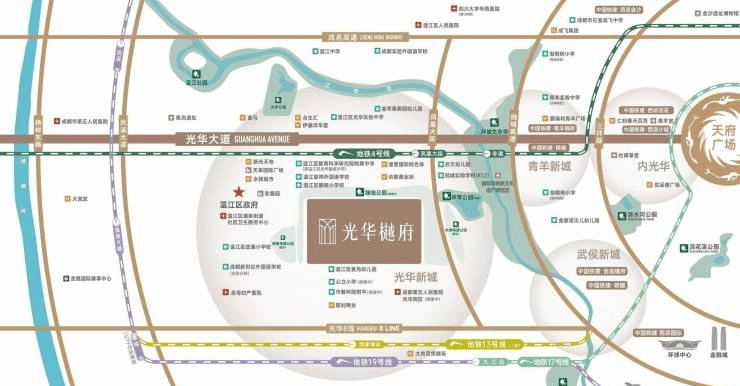 光华新城处于温泉大道以东,光华大道以北,是成都近十年向西第一站,是成都重点扶持打造的百亿级核心主力商圈和城市级商业中心,区域配套齐,城市界面呈现度高,是温江宜居“后花园”。