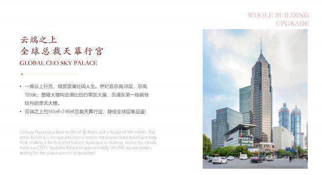 项目位于浦东陆家嘴金融商业贸易区,在浦东南路与世纪大道交叉口,浦东199 米的钢骨结构的 38 层摩天大楼,与美国纽约的帝国大厦一样超群绝伦,庄重典雅。一楼门厅挑高 16 米,办公楼层高 3.8 米,气派非凡。