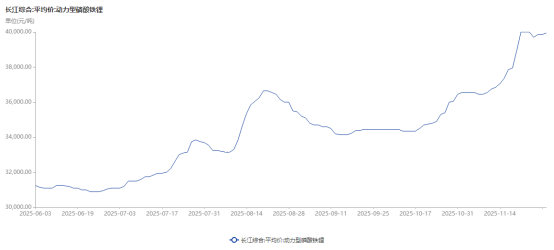 近期,磷酸铁锂不同类型产品价格均呈上涨态势。截至12月1日,长江有色金属网数据显示,动力型磷酸铁锂现货均价攀升至39950元/吨,价格区间在38400至41500元/吨。储能型磷酸铁锂现货均价同步上涨至36950元/吨,价格区间为35300至38600元/吨。上述两种类型产品单日涨幅均达100元/吨。