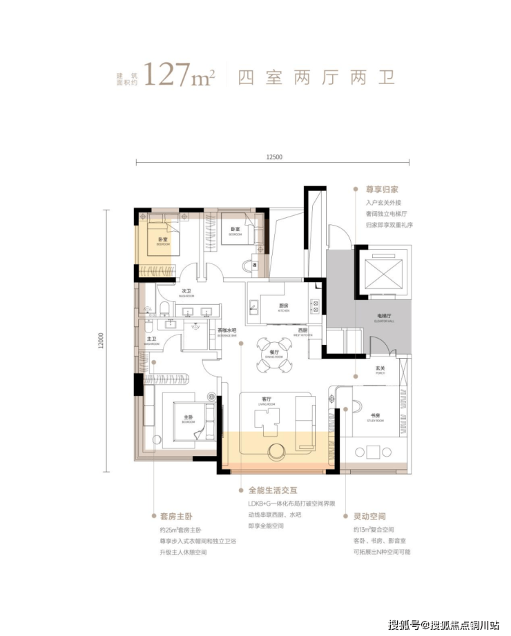 项目还有建面约127㎡四房户型,设计理念同样超前