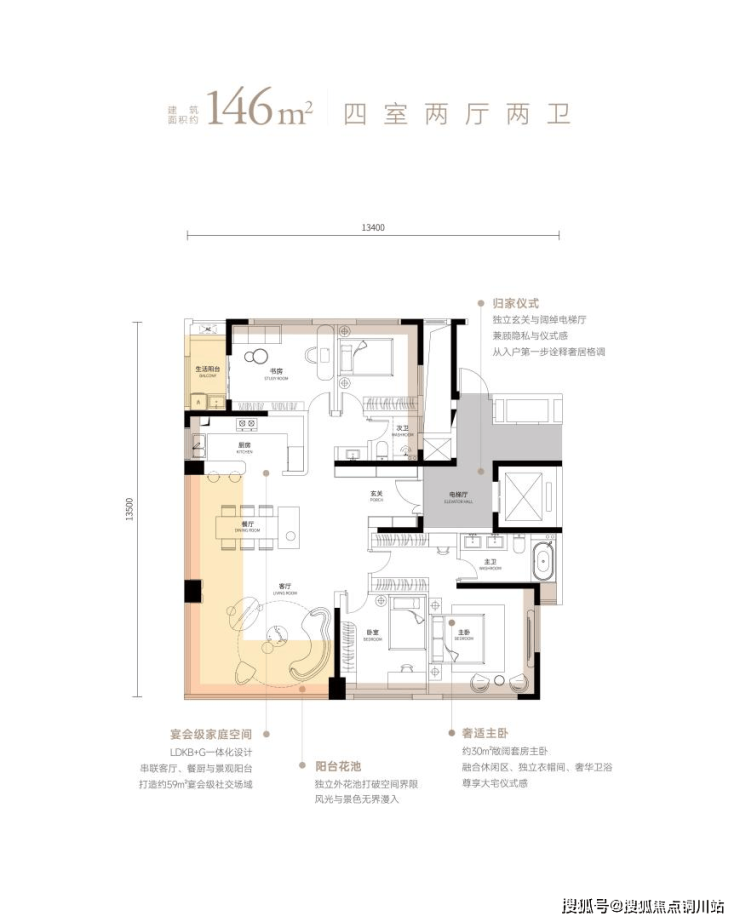 建面约158㎡四房户型,也是满载了顶级设计理念的「超级爆款」