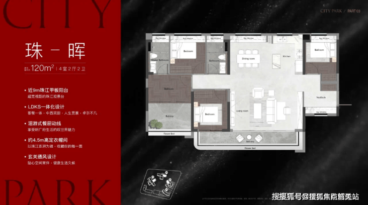 户型实测亮点众多。以120㎡的四房户型为例,四开间朝南,让阳光能够充分洒进室内,使整个空间明亮通透;约6.5米宽景阳台,视野开阔,可欣赏到周边的公园美景,让您在家中就能享受大自然的宁静与美好。