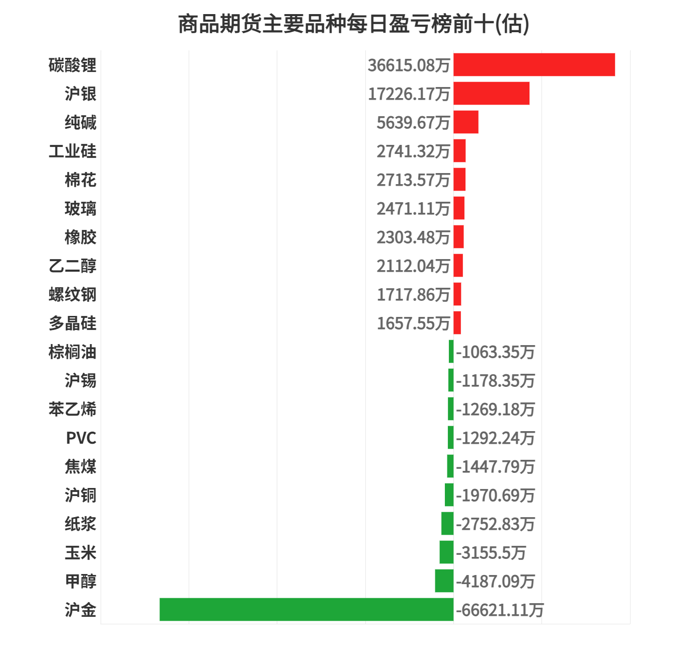 今日商品期货上榜机构席位中碳酸锂盈利第一,为36615.08万元。