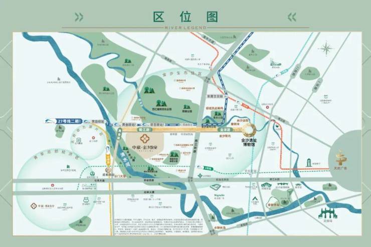 自2010年金沙遗址入选首批国家考古遗址公园,该区域便跃升为成都楼市价值高地。巅峰时期以”金沙”命名的项目超过20个,与”南富”桐梓林形成鼎立之势。经过二十余年发展,金沙板块已形成完善的交通、商业、教育、生态及医疗配套体系,这与中旅”馥棠”系”非核心不立项目”的选址理念高度契合。