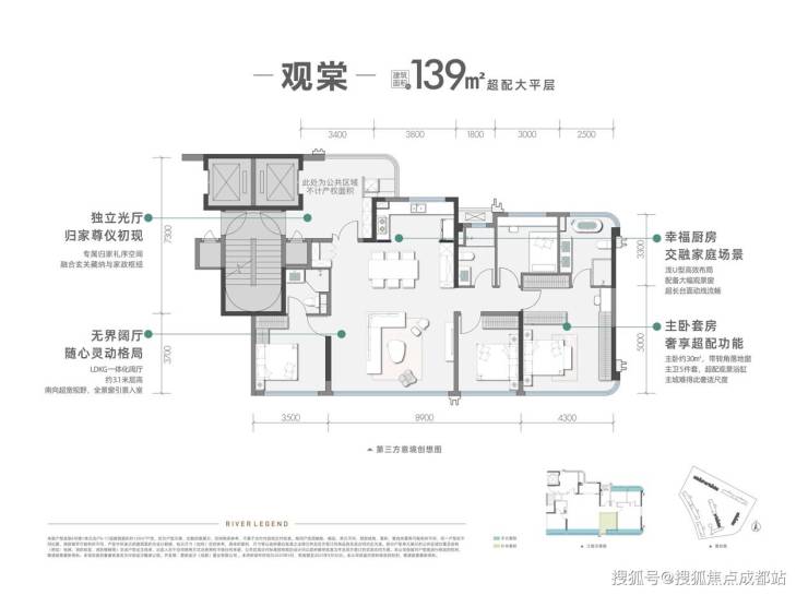 该户型以约17.4米超宽视野面打破空间界限,实现室内外景致交融。创新设计的超级大方厅配合270度采光主卧套房,重塑高端居住体验。特别值得关注的是7层纯洋房产品,独享一线清水河岸线资源。6.8米河景客厅、4.5米主卧套房、3.3米次卧套房及近10平方米空中院馆均面向清水河布局,让日常起居与自然景致相得益彰。