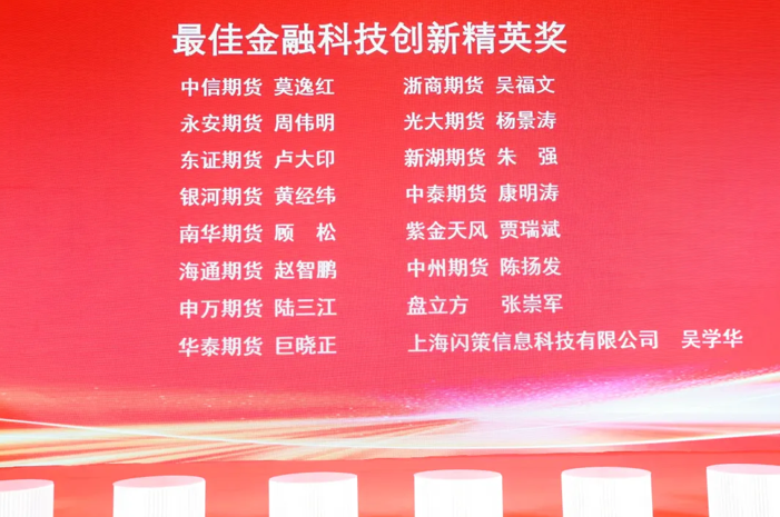 期货日报网讯(记者 王宁)11月25—26日,在长沙举办的“2025年期货业高质量发展创新研讨会暨第十八届中国最佳期货研究团队评选颁奖典礼”上,上海闪策信息科技有限公司(下称“闪策科技”)及其总经理吴学华分获“最佳期货数智化建设技术服务创新奖”与“最佳金融科技创新精英奖”两项荣誉。